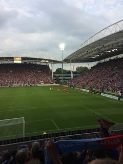 Op de schermen staat er een wedstrijd aan, even kijken wie er een doelpunt in het netje zal knallen
